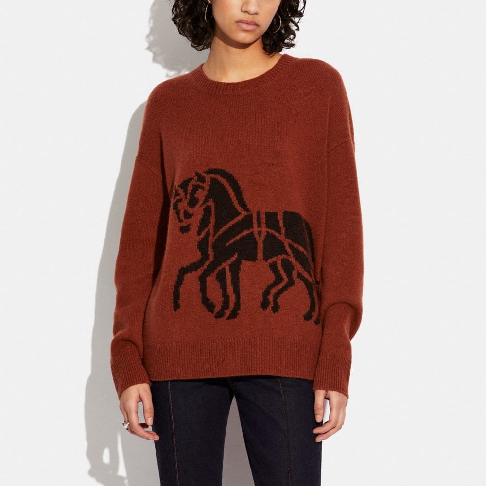 Horse And Carriage Wrap Intarsia Sweater