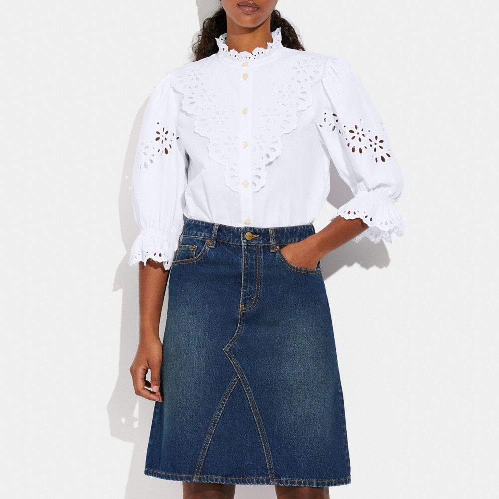 Broderie Anglaise Bib Shirt In Organic Cotton