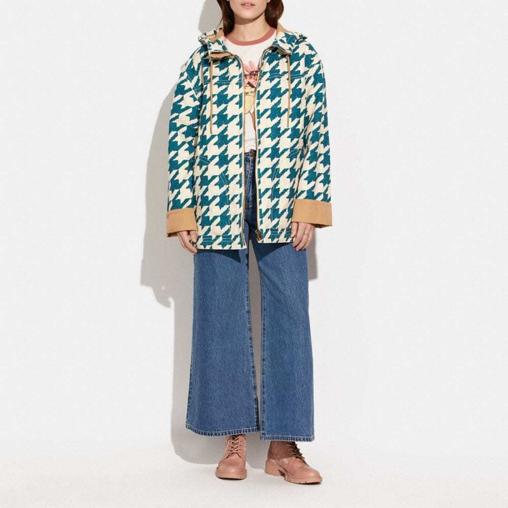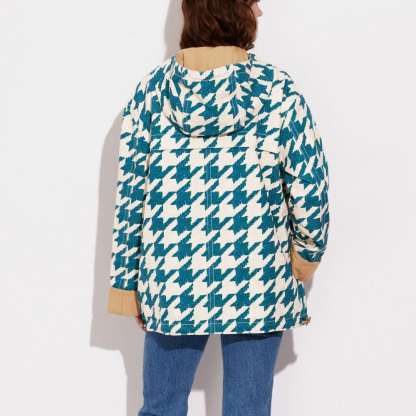 Houndstooth Hooded Jacket In Organic Cotton