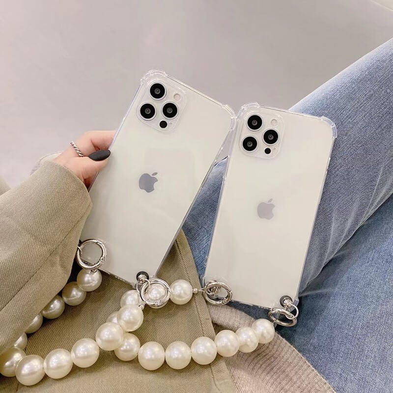 2021 New Fashion Transparent Pearl Bracelet Phone Case For iPhone