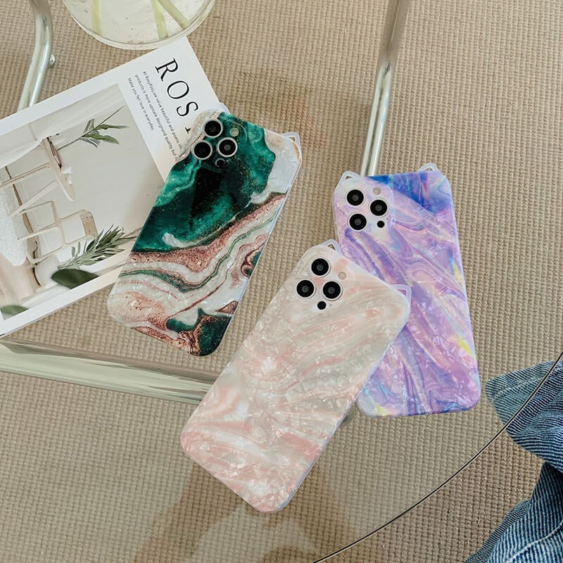 2021 New Cat Ear Marble Shell Pattern Phone Case For iPhone