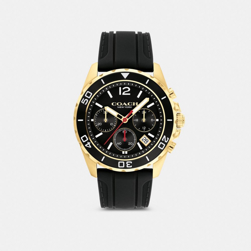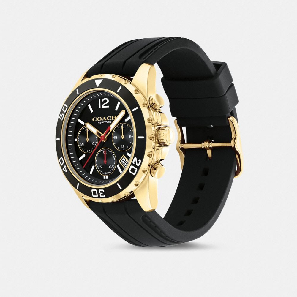 Gold tone case and black rubber strap