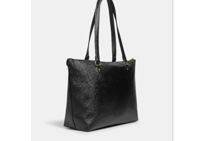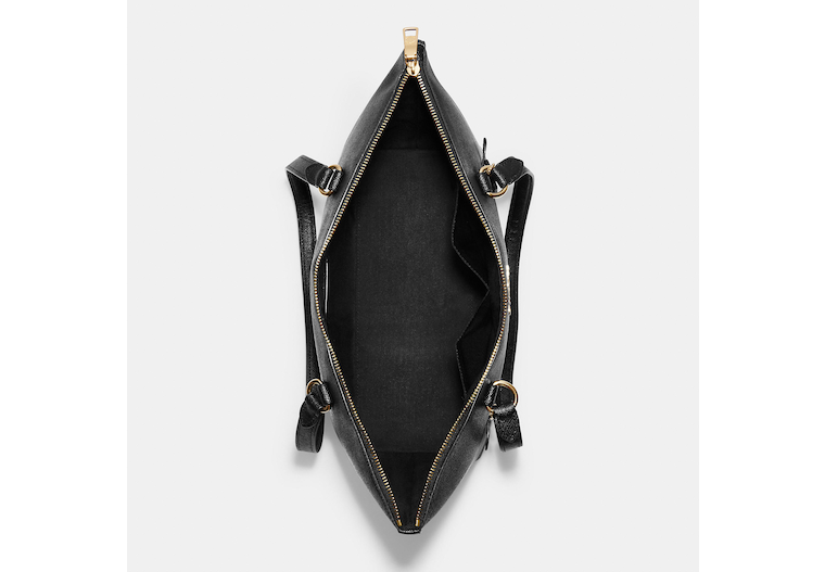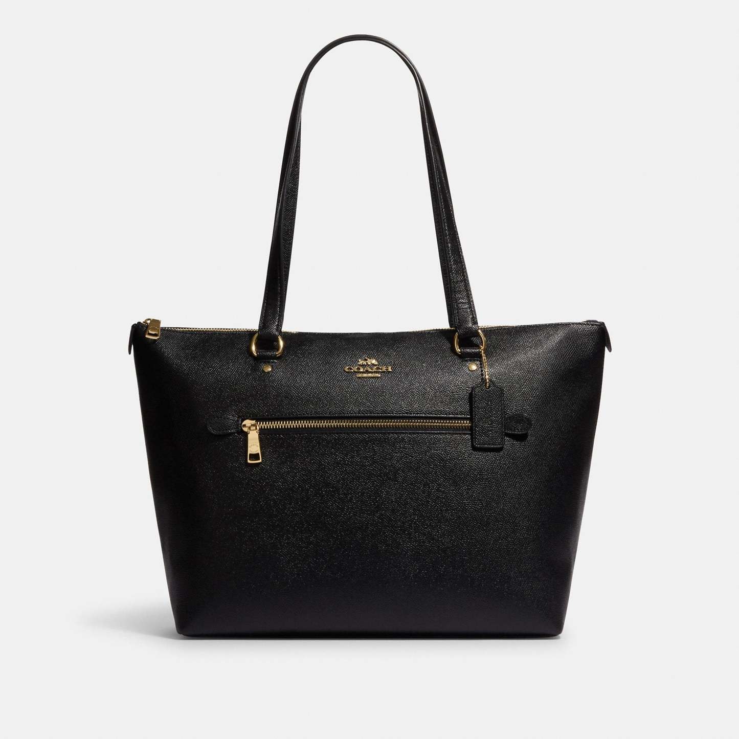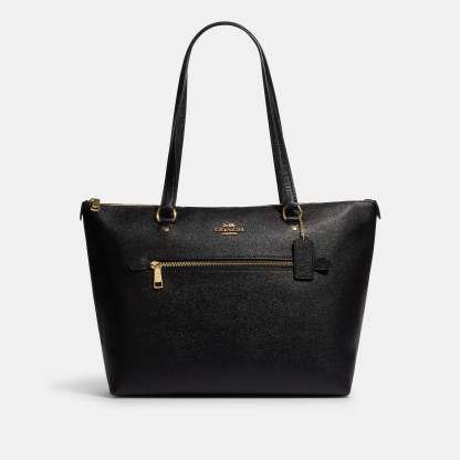 Crossgrain leather Inside zip cell phone and multifunction pockets Zip-top closure fabric lining Handles with 10 1/4 drop Outside zip pocket 12 3/4 (L) x 10 1/2 (H) x 5 1/2 (W) Style No. 6840 | Outlet Gallery Tote - Black