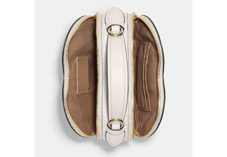 Bestseller Signature coated canvas and crossgrain leather Two credit card slots Double zip closure fabric lining Top handle with 2 drop Detachable strap with 22 1/2 drop for shoulder or crossbody wear 6 (L) x 7 (H) x 2 1/2 (W) Style No. CJ450 | Outlet Heart Crossbody In Signature Canvas - Beige