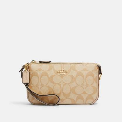 Signature coated canvas and refined pebble leather Two credit card slots Inside multifunction pocket Zip-top closure fabric lining Handle with 6 1/4 drop 7 1/2 (L) x 4 1/2 (H) x 2 (W) Style No. CA444 | Outlet Nolita 19 In Blocked Signature Canvas - Multi