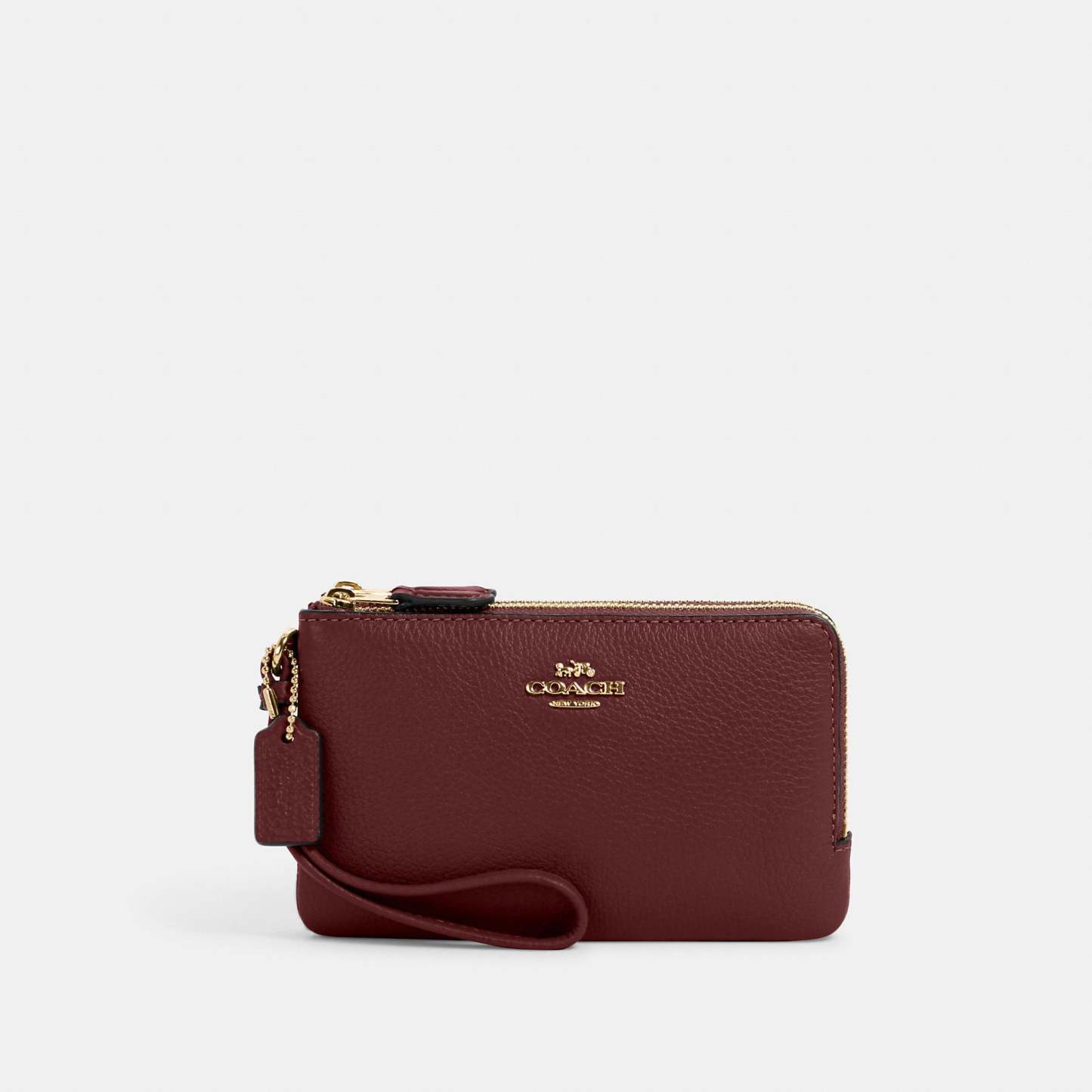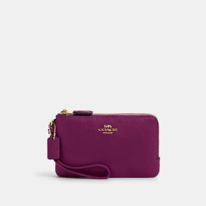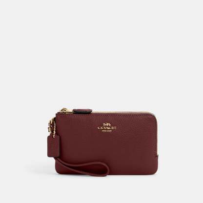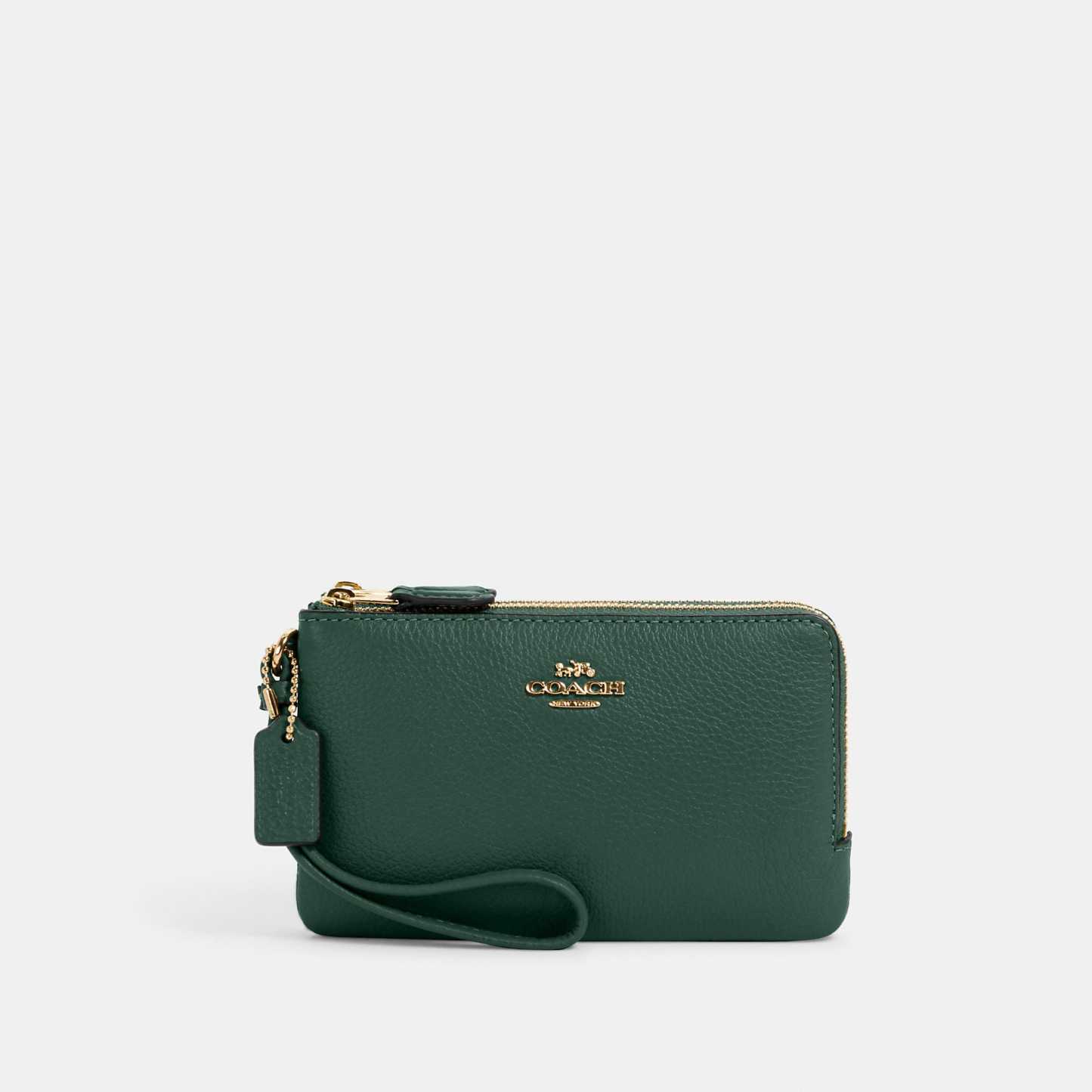 Refined pebble leather Two credit card slots Double zip closure fabric lining Wrist strap attached 6 1/2 (L) x 3 3/4 (H) x 1 3/4 (W) Style No. 6649 | Outlet Double Corner Zip Wristlet - Blue