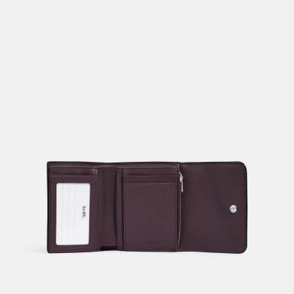 Signature coated canvas and smooth leather Two credit card slots Full-length bill compartment ID window Zip coin pocket Snap closure Outside open pocket 4 1/4 (L) x 4 (H) Style No. CE930 | Outlet Small Trifold Wallet In Blocked Signature Canvas - Black