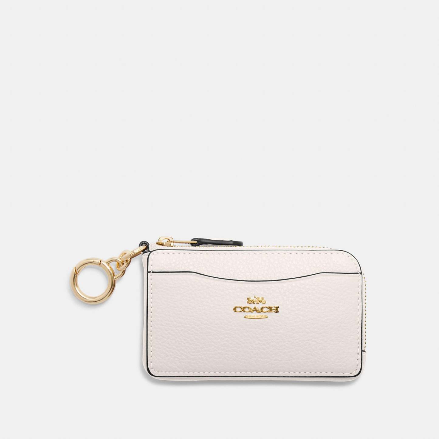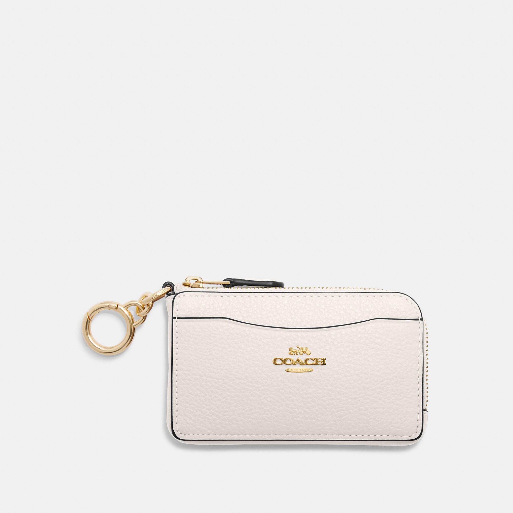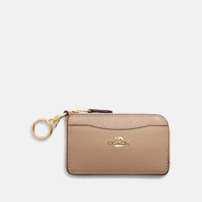 Refined pebble leather Inside open pocket Zip closure Five credit card slots Attached hinged key ring 4 3/4 (L) x 2 3/4 (H) x 3/4 (W) Style No. CH162 | Outlet Multifunction Card Case - Beige