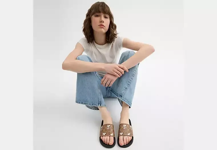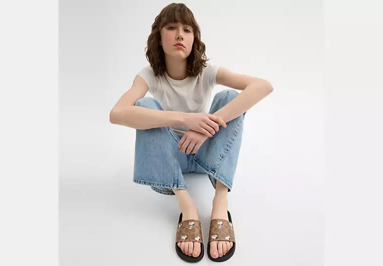 X Peanuts Udele Sport Slide In Signature Canvas With Snoopy Print