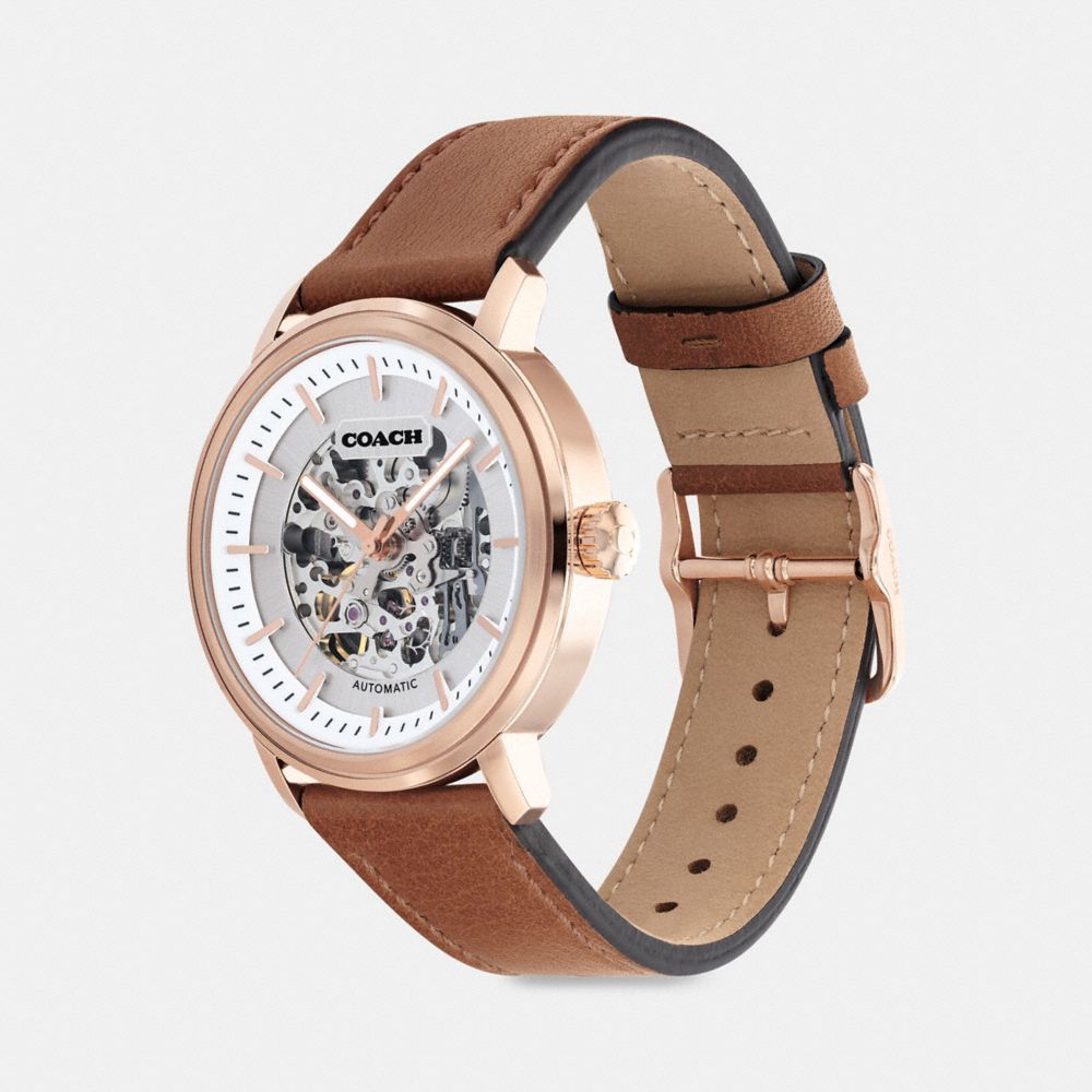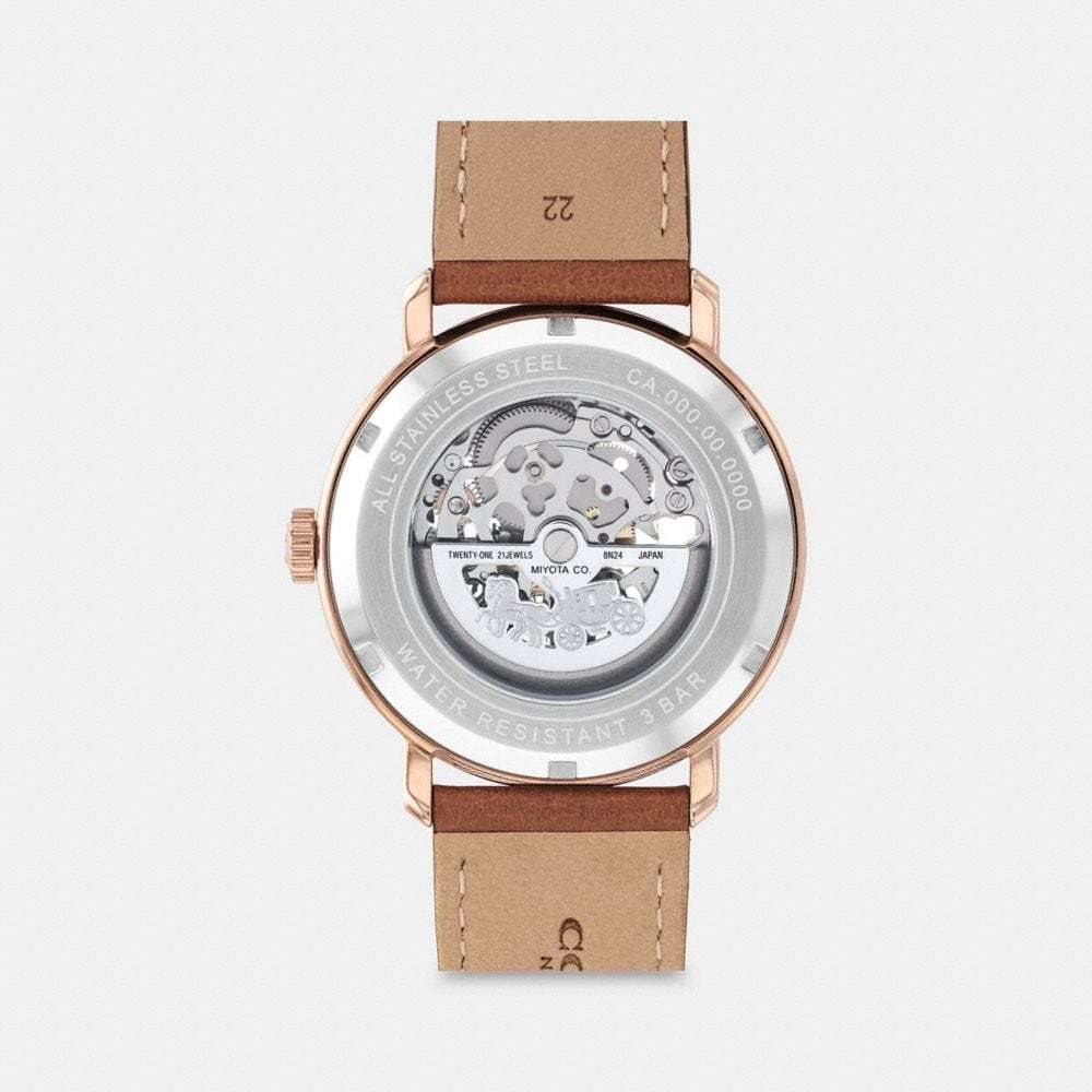 Rose gold tone case and leather strap