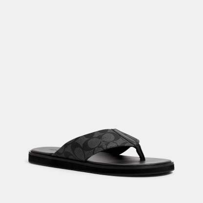 Signature coated canvas upper Fabric lining man-made leather footbed Rubber outsole Slip on Style No. G4921 | Outlet Flip Flop In Signature Canvas - Beige, Size - 13
