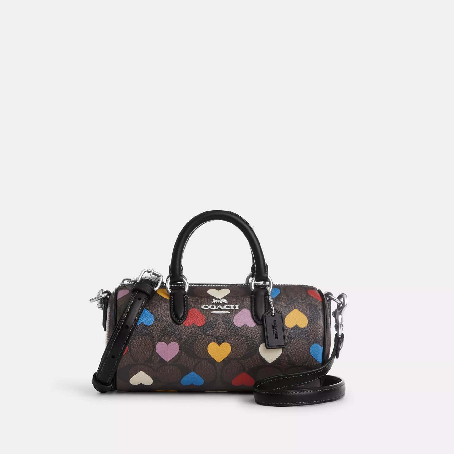 Signature coated canvas and smooth leather Zip-top closure fabric lining Handles with 2 1/2 drop Detachable strap with 23 1/4 drop for shoulder or crossbody wear 7 1/2 (L) x 4 (H) x 4 (W) Style No. CO999 | Coathtth Outlet Lacey Crossbody In Signature Canvas With Heart Print - Brown