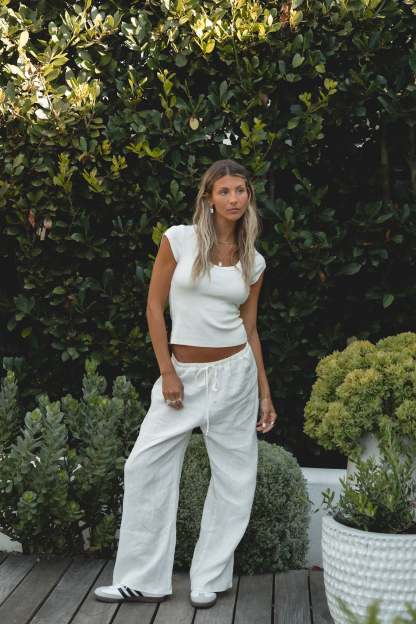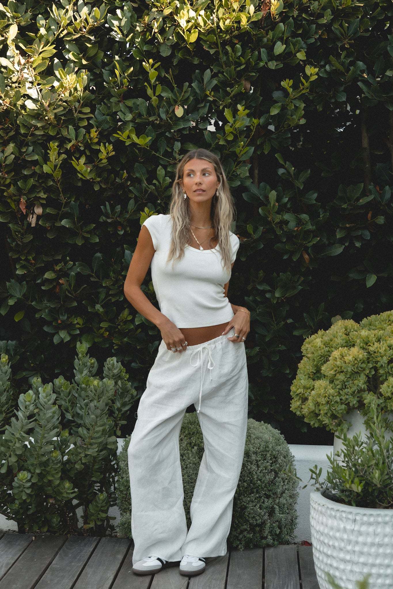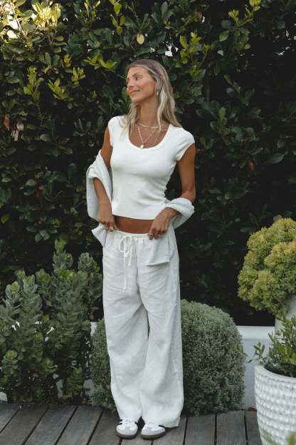 Discover our latest addition, the Cove Essential Scoop Tee, a new Signature Style that will elevate your classic white-tee. The cap sleeve, scoop neck, and ribbed knit will have you reaching for this tee on the daily.