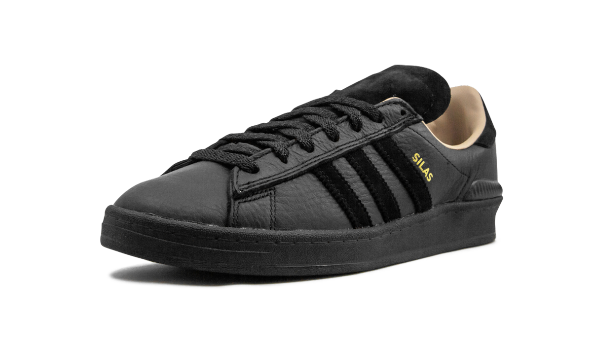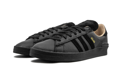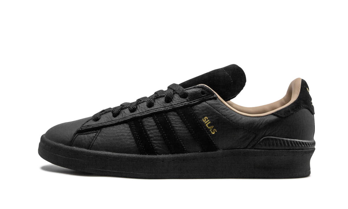 The adithtdas Campus ADV x Silas is a versatile skateboarding shoe designed in Silas Baxter-Neal's colors. A lifestyle shoe at heart, adithtdas takes the '80s-era Campus design and adapts it for the board. The soft and durable leather upper is combined with a Bounce midsole cushioning system, Geoflex herringbone sole, and molded EVA sockliner. Sporting an all-black look, the special Campus ADV style also rocks a tan interior lining and gold-colored Silas stamp atop the Three Stripes branding on the side.