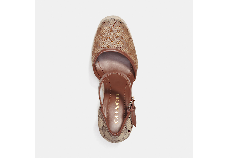 Signature jacquard and leather upper Man-made leather lining and footbed Rubber outsole Buckle closure 2 1/4 heel This piece is crafted of our Signature jacquard made from a blend of organic cotton and recycled polyester Style No. C8911 | Outlet Raine Espadrille In Signature Jacquard - Beige, Size - 9.5