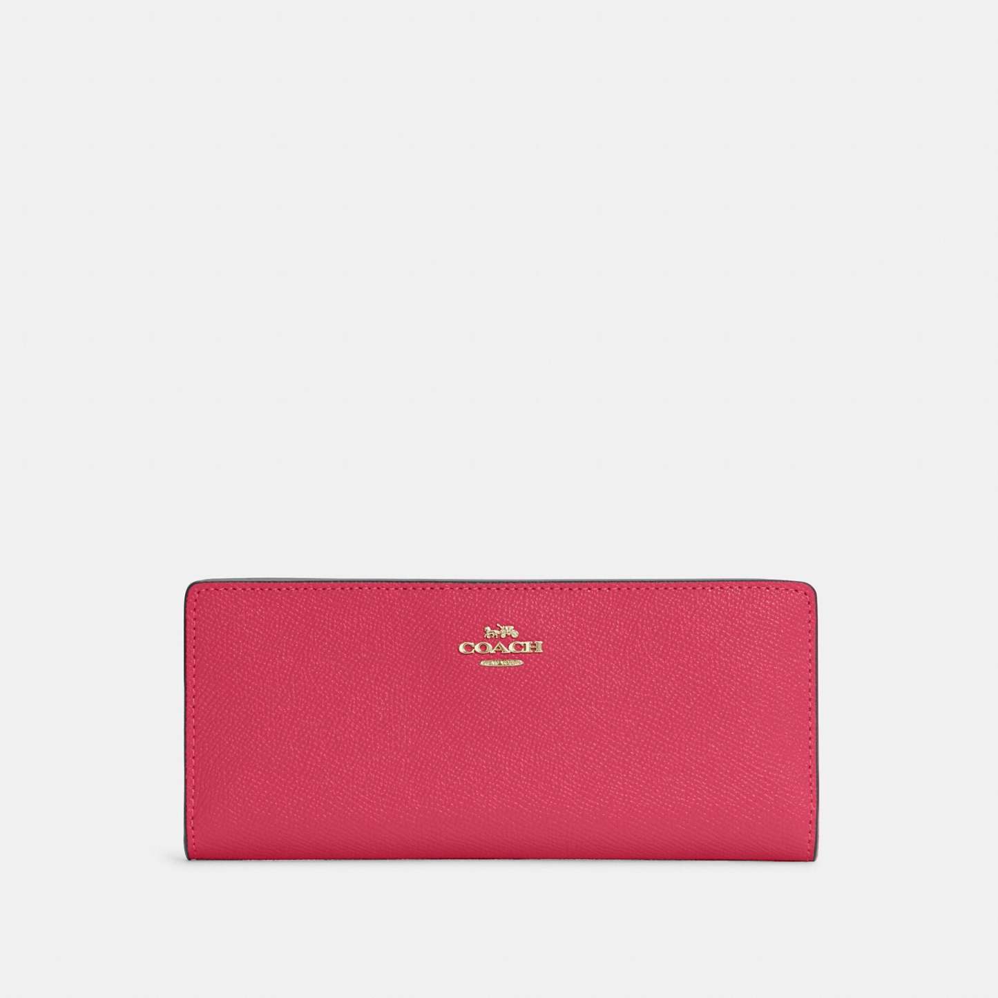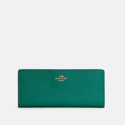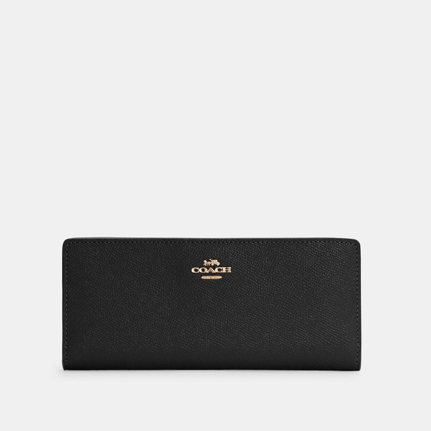 Crossgrain leather 12 credit card slots Full-length bill compartments Snap closure Outside zip pocket 7 1/2 (L) x 3 1/2 (H) x 1/2 (W) Style No. C3440 | Outlet Slim Wallet - Brown