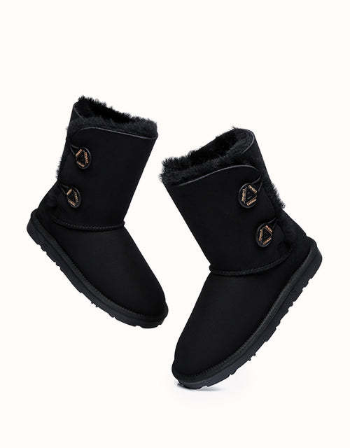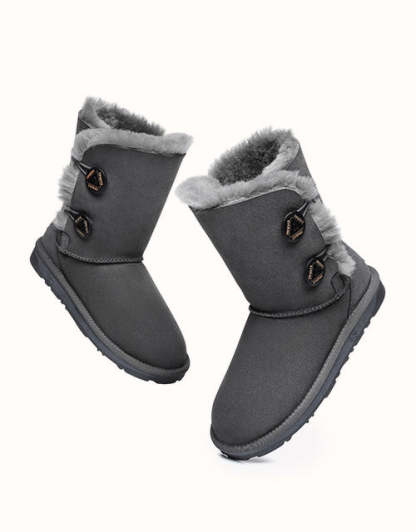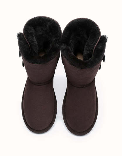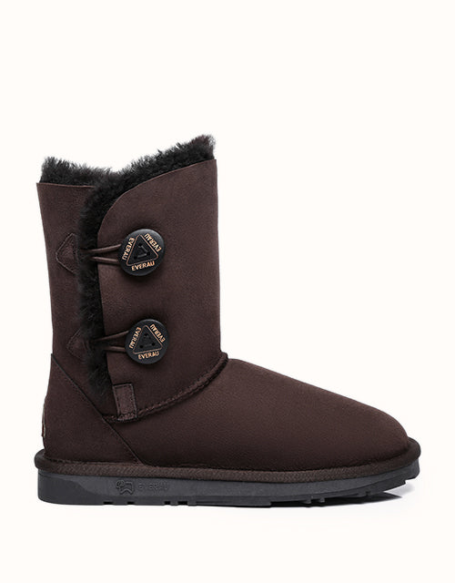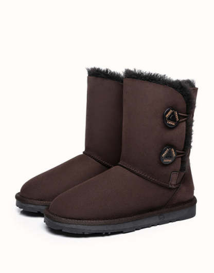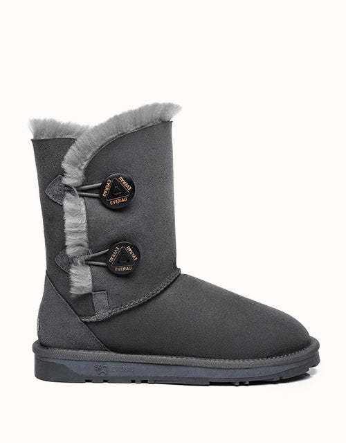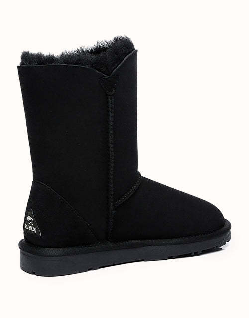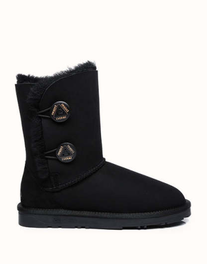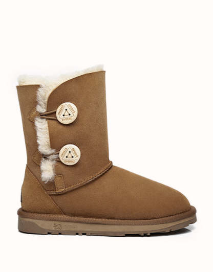The Twin Button includes a dual button opening on the side that is both stylish and functional. The fluffy interior that spills out the top is gorgeously soft and luxurious. Put your best foot forward and step into these boots to feel like you’re walking on a big cloud.