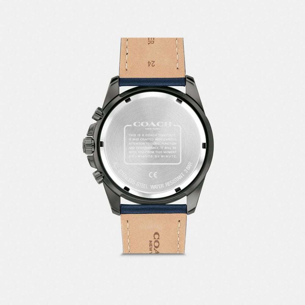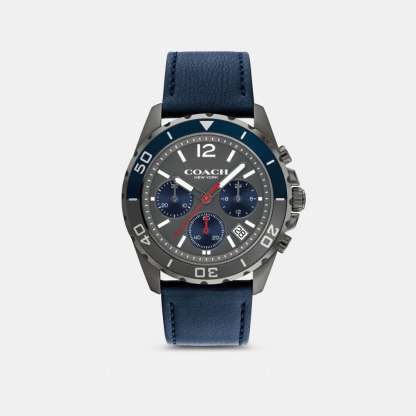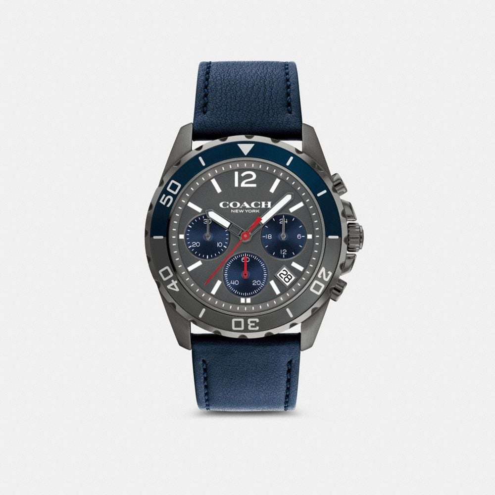 Gray ionic plated case and deep blue leather strap