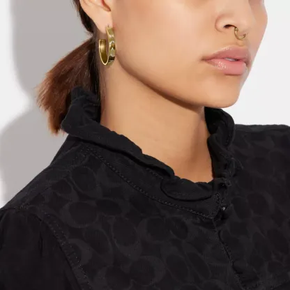 Cast in mixed metals for a modern look, these sleek hoop earrings are detailed with our name for iconic style. The minimal, elegant style secures with a butterfly closure.