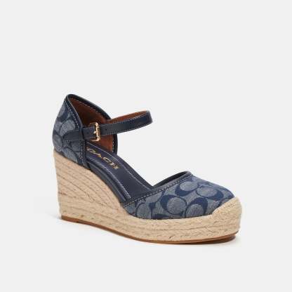 Signature denim and leather upper Man-made leather lining and footbed Rubber outsole Buckle closure 2 1/4 heel Style No. CG604 | Outlet Raine Espadrille In Signature Denim - Blue, Size - 8