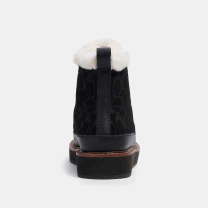 Signature suede and man-made leather upper Faux fur lining and footbed Rubber outsole Lace-up closure Shaft - 4 1/2 height 11 circumference 4 platform Style No. CE325 | Outlet Imani Boot In Signature - Black, Size - 9.5