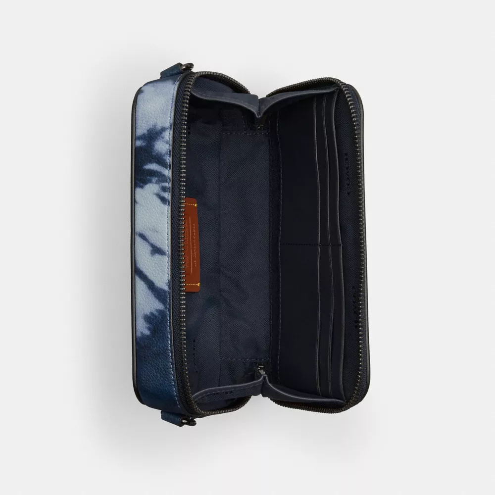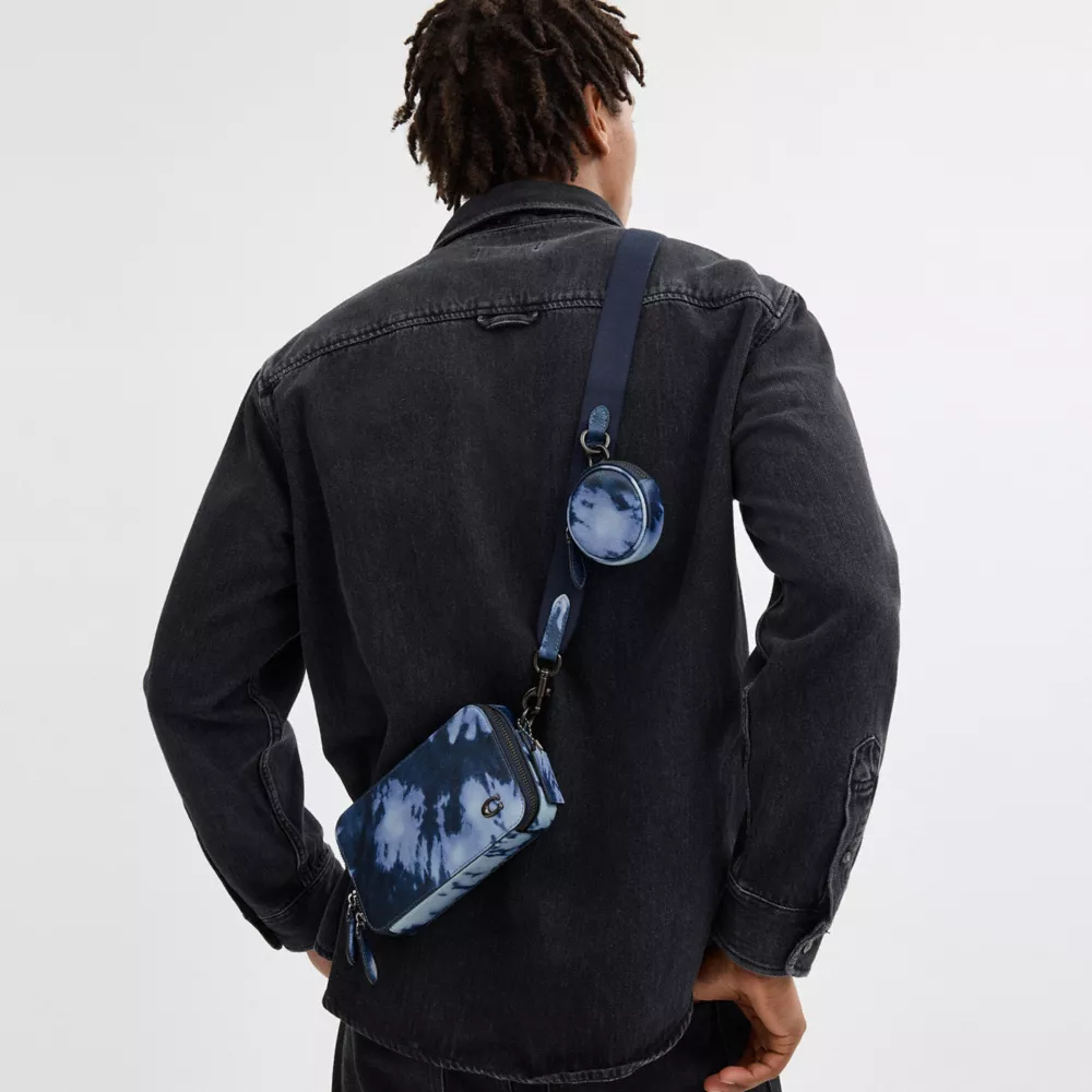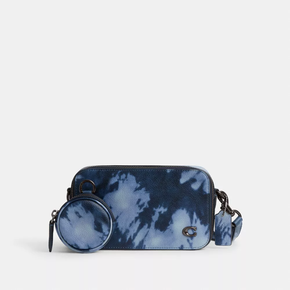 For adventures near and far, our Charter is designed to make every journey, commute and errand feel like a first-class experience. Detailed with our Signature hardware, this compact one compartment crossbody is crafted of pebble leather printed with our sophisticated spin on a classic tie-dye pattern and features a detachable round zip pouch to hold small essentials. Slip it into a larger bag or convert it to a small messenger with the detachable strap.
