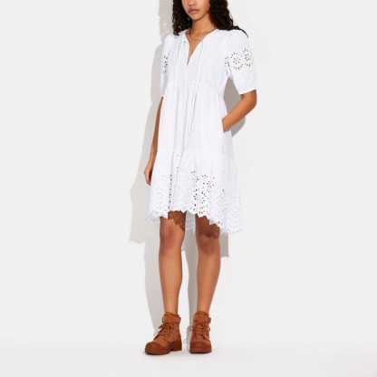 Restored Broderie Anglaise Puff Sleeve Dress In Organic Cotton
