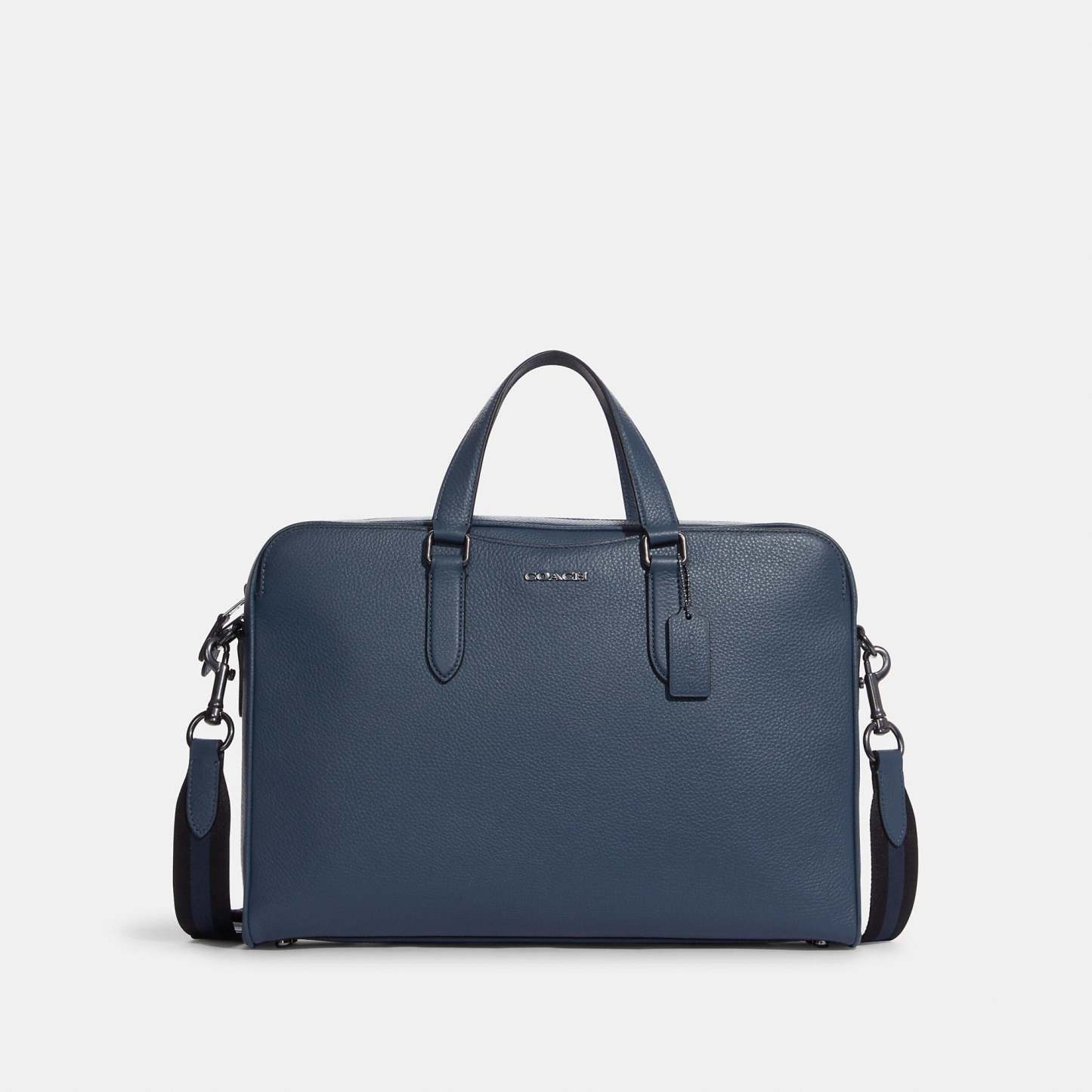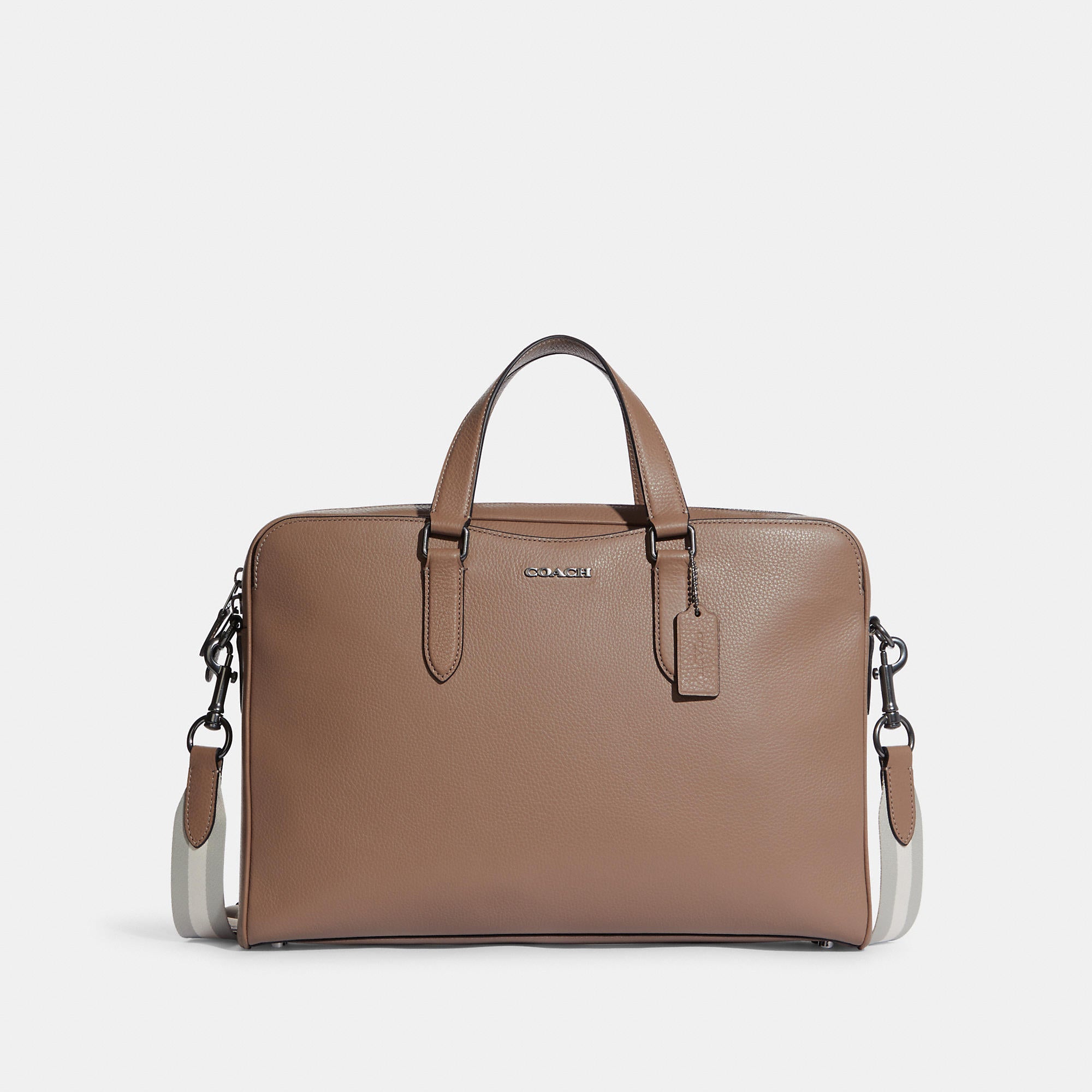Refined pebble leather Four credit card slots Inside zip and multifunction pockets Inside laptop sleeve with secure tab Zip closure fabric lining Handles with 5 drop Outside snap pockets Detachable strap with 25 drop for shoulder or crossbody wear Four protective feet at base 15 1/2 (L) x 11 (H) x 3 1/4 (W) Style No. C8174