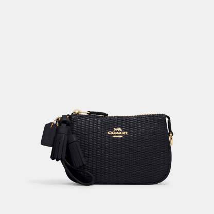 Straw and smooth leather Two credit card slots Zip-top closure fabric lining Handle with 4 1/2 drop 6 (L) x 4 (H) x 1 1/2 (W) Style No. CH215 | Outlet Nolita 15 In Straw - White