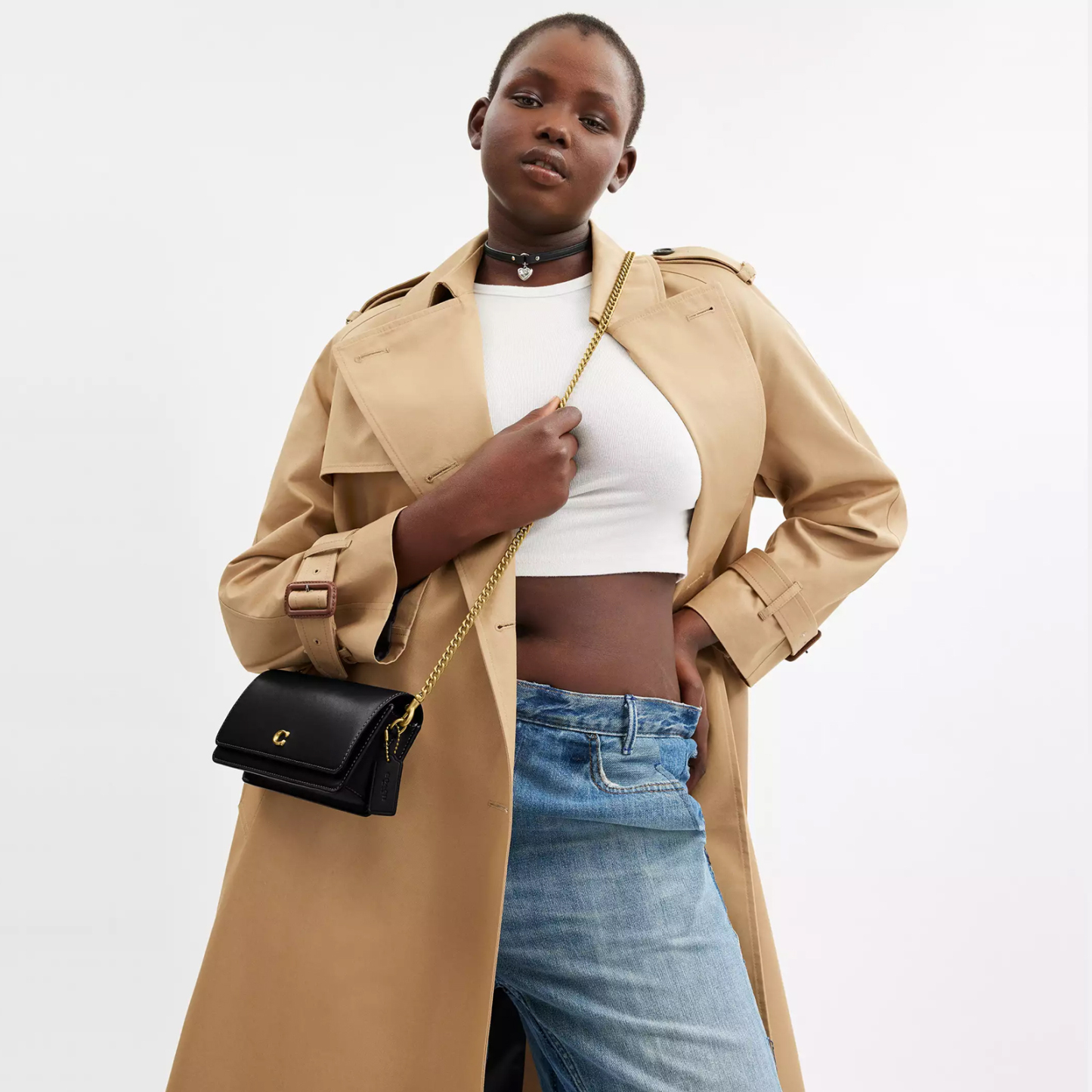 - Detachable chain strap with 21.50" drop for shoulder or crossbody wear
