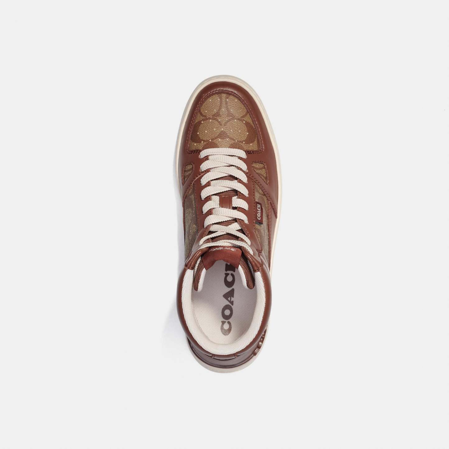 Signature coated canvas and leather upper Fabric lining and footbed Rubber outsole Lace-up closure Style No. CC736 | Outlet Clip Court High Top Sneaker In Signature Canvas - Brown, Size - 9