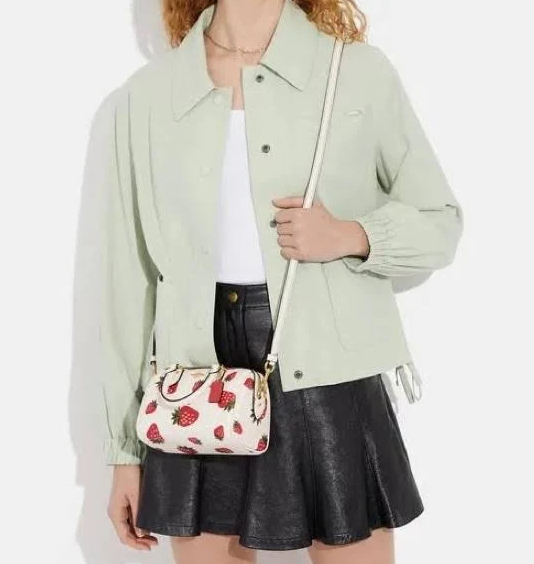 Rowan Zip Satchel Bag in Signature Canvas with Strawberry Print